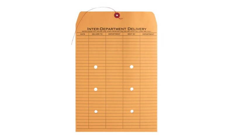 Buy online and pick up at office depot® in 1 hour. Use colored envelopes to code mail for quick special handling identification. Envelopes feature string and button closure for repeated use. Date, deliver to, department, sent by and department. Use colored envelopes to code mail for quick special handling identification. Date, deliver to, department, sent by and department. Envelopes offer a ruled format on one side for interdepartmental routing. Holes allow visual acknowledgment of contents. Printed two sides with space for 63 entries. Keep business going with envelopes from office depot®! Envelopes feature string and button closure for repeated use. Envelopes feature a string and button closure for repeated use. Over 37,500 products in stock.